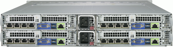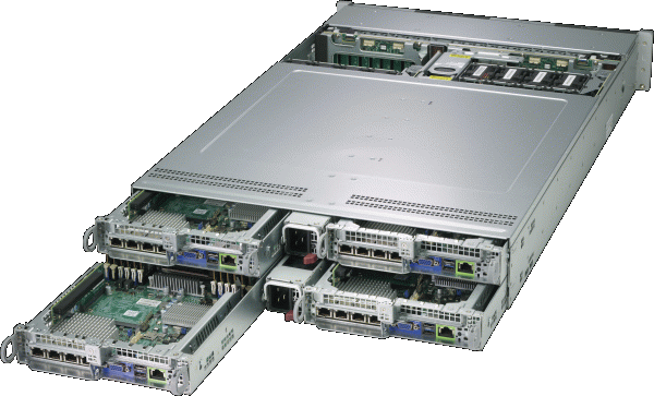 • Four hot-pluggable systems (nodes) in a 2U form factor. Each node supports the following: