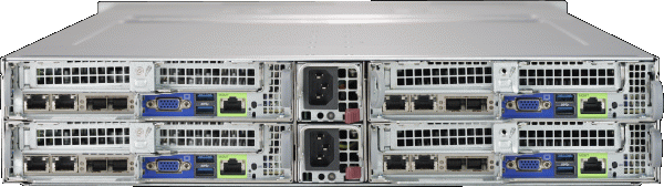 • Four hot-pluggable systems (nodes) in a 2U form factor. Each node supports the following: