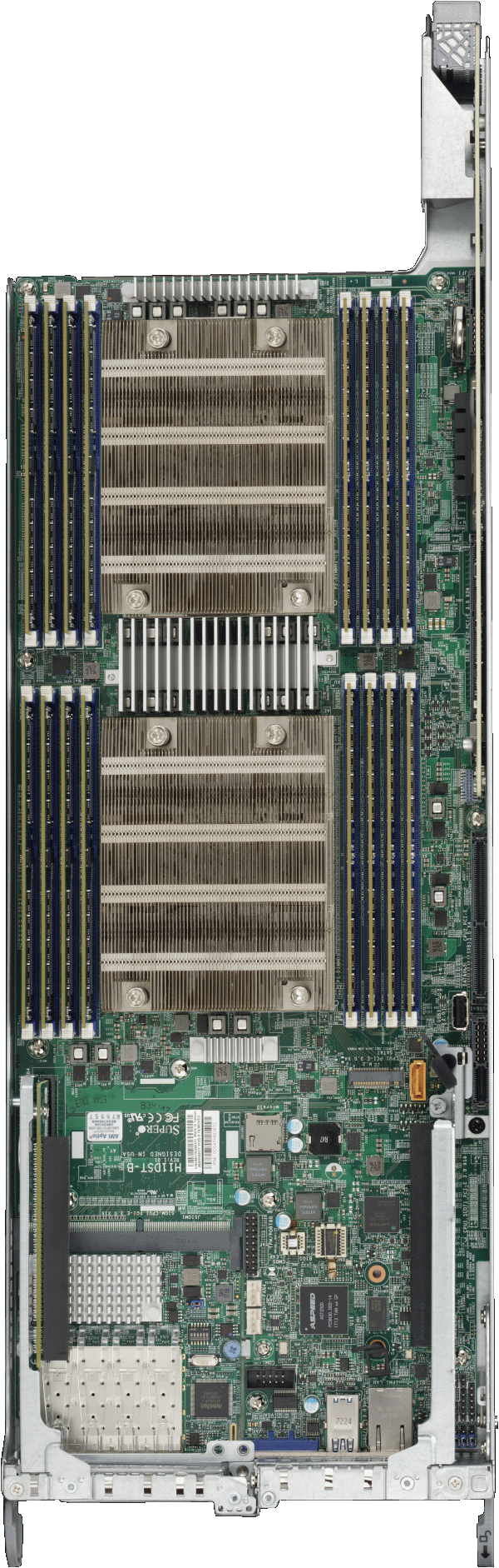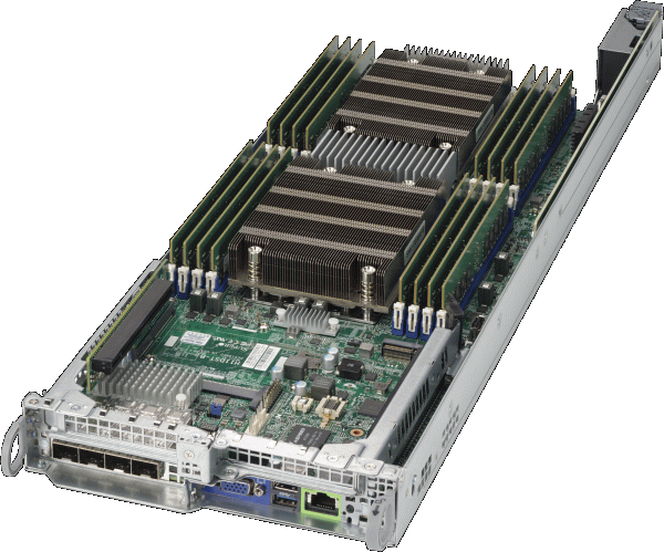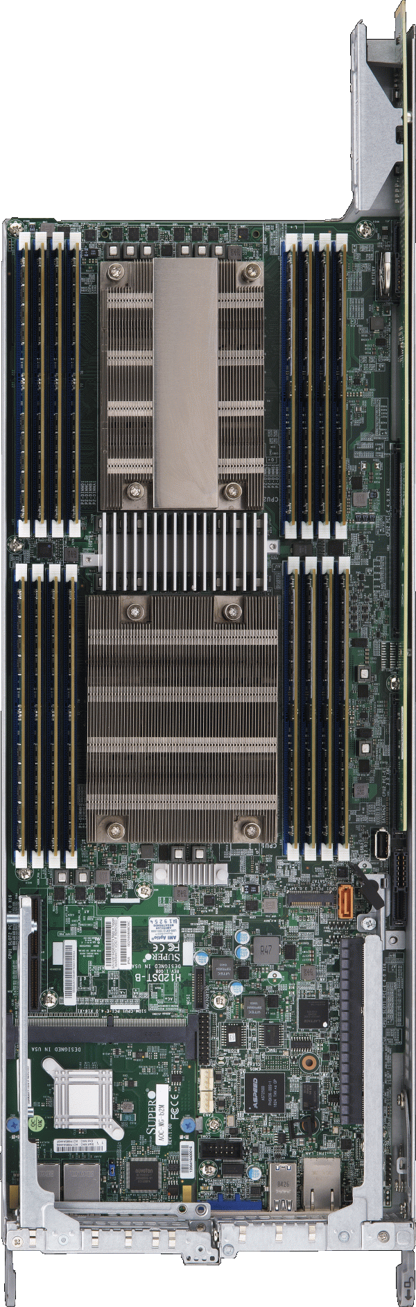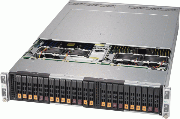 • Four hot-pluggable systems (nodes) in a 2U form factor. Each node supports the following: