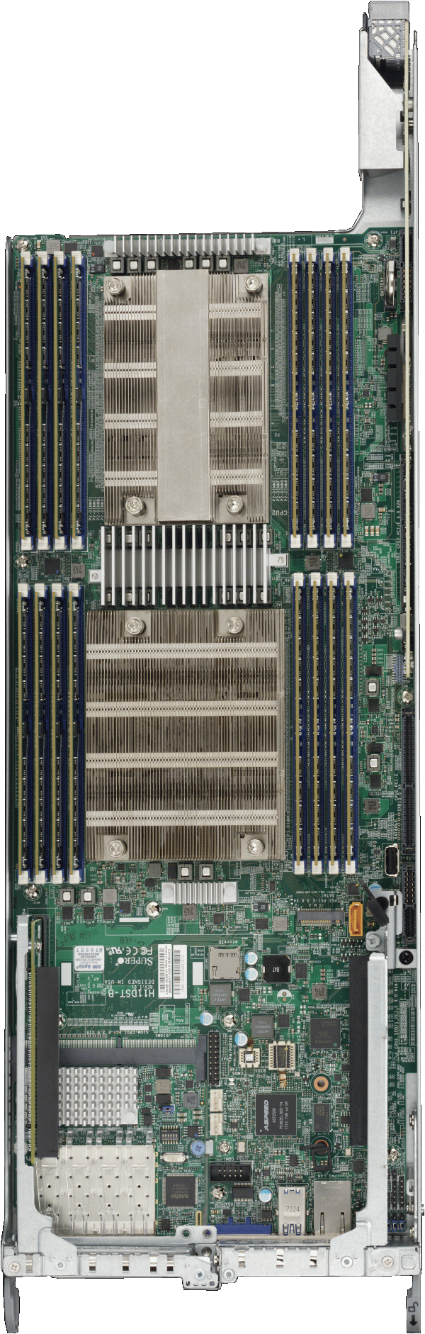 • Integrated IPMI 2.0 + KVM with dedicated LAN