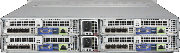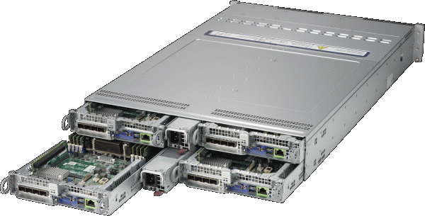 • Four hot-pluggable systems (nodes) in a 2U form factor. Each node supports the following: